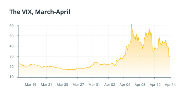 此外还有市场恐慌因素。贸易战给经济前景带来诸多不确定性。投资者普遍担忧可能出现更多关税措施,以及其他国家的报复性举措。这种不可预测性导致企业推迟投资和招聘计划,消费者也可能收紧支出。这种情况通常反映为市场波动性显著上升,而这可以通过VIX(华尔街俗称“恐惧指数”)的走势得到验证,该指数在这类时期往往会大幅攀升。